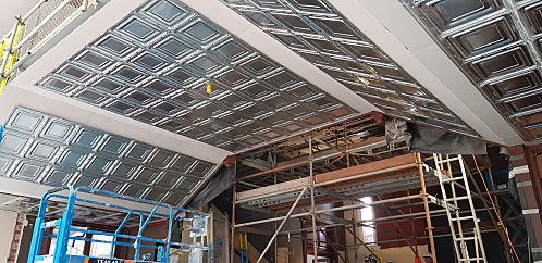 Scope of Contracting WorksCreate new die of pressed metal panel to original imperial measurements from a photograph of the original panel. Working with heritage architects and builder Multiplex install and restore panels to the original Beaufort Staircase.