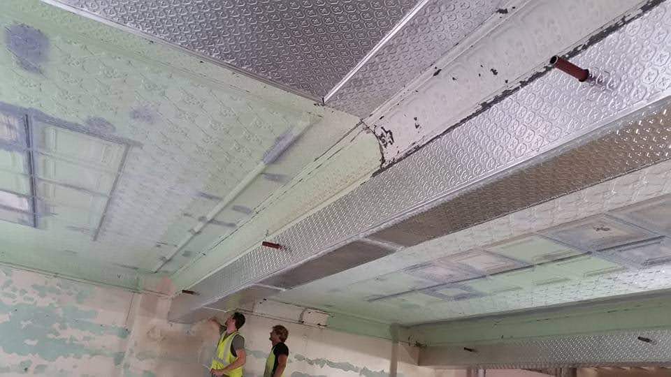 Scope of Contracting WorksRestoration, removal and reinstallation of original pressed metal panels over multiple floors. Installation of new pressed metal panels like for like and creation of York Street Panels to recreate original ceiling rose. Preservation of original historic features as per Heritage Architect instructions.