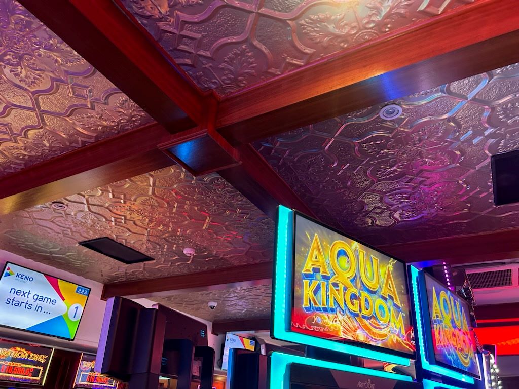 Project DescriptionWelcome to the new Royal George Hotel transformation. The Royal George Hotel is located on the corner of Ann & Brunswick Streets, Fortitude Valley, Brisbane. The original building dates back as far as 1850 with major additions & renovations in 1886 & 1924 transforming it into a grand late Victorian style building. Unfortunately in the 1960's much of the Victorian style decoration was stripped out & Brisbane Pressed Metal are proud to be a part of restoring some of the original grandeur this beautiful Heritage Listed Hotel deserves. Brisbane Pressed Metal have supplied & installed all pressed metal panels in Newington design, Lattice design & Carlton design to the main bar area & gaming room creating stunning decorative feature ceilings worthy of such a special building.