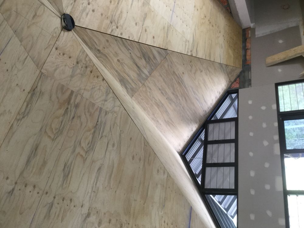 Project DescriptionAfter visiting the Adelaide showroom and discussing options on creating a stunning feature ceiling, an Adelaide Pressed Metal team of 3 tradesmen made the journey to the remote location of Acacia Hills Northern Territory, 60kms south of Darwin. The project was a pre fab new build, cyclone proof, private residence. Quantites were taken from photos, plans and a video of the 12mm ply substrate that was already in place. The main pressed metal design chosen was Murray Bridge with a Pebblecrete border. The Pebblecrete border at 150mm margins ran around the walls with a 300mm folded margin along the valleys creating 150mm to each side. There were challenges to asthetically matching angles and patterns with the square pattern of Murray Bridge but with our installers expertise and attention to detail the end result was stunning. Approximately 100 panels were used to create the cathedral inspired ceiling. Our team excelled in the challenging conditions of the heat & humidity, working at heights in the remote location and the project was completed in 4 days.