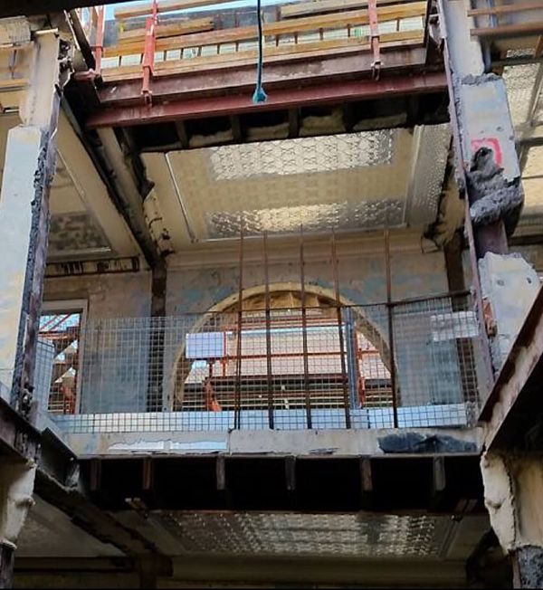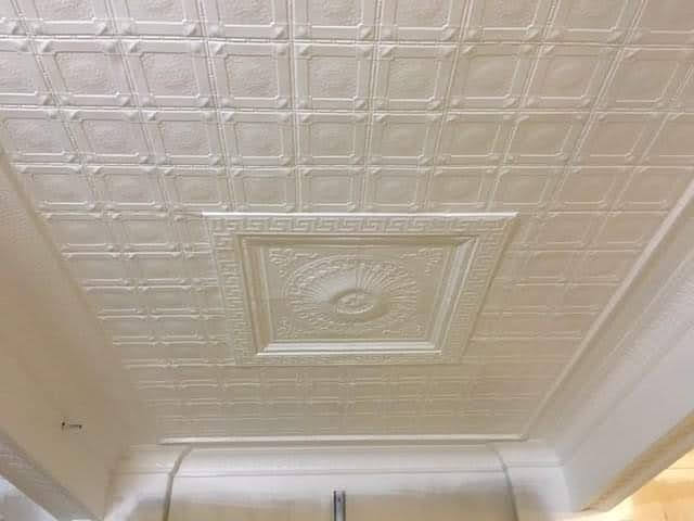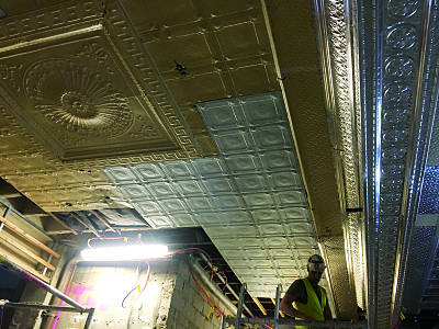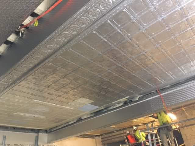 Scope of Contracting WorksRestoration, removal and reinstallation of original pressed metal panels over multiple floors. Installation of new pressed metal panels like for like and creation of York Street Panels to recreate original ceiling rose. Preservation of original historic features as per Heritage Architect instructions.